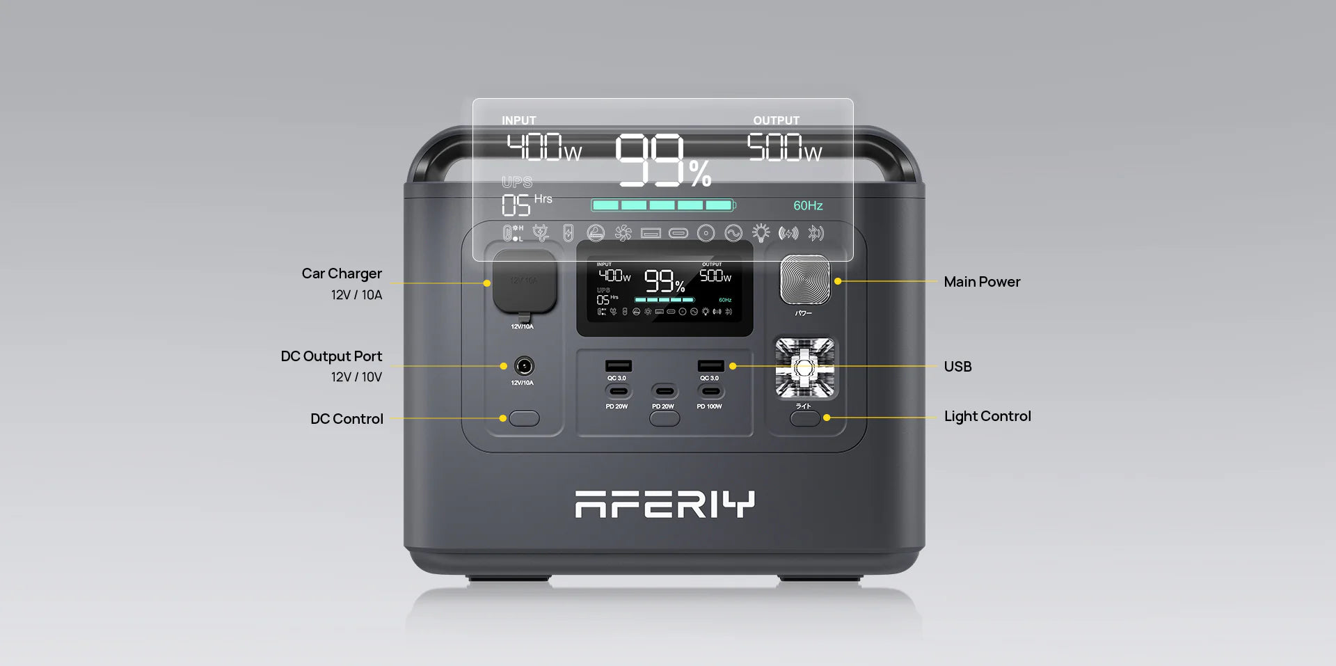 AFERIY tragbares Powerstation 800W 512Wh verfügt über 8 Ausgangsanschlüsse, um Ihnen mehr Lademöglichkeiten zu bieten (Wechselstromsteckdosen, USB-A, USB-C, Zigarettenanzünderanschluss und Gleichstromanschluss), die mehrere Geräte wie Mobiltelefone, Laptops und Autokühlschränke mit Strom versorgen können , Taschenlampen, LED-Leuchten, elektrische Ventilatoren, Projektoren, CPAP usw.