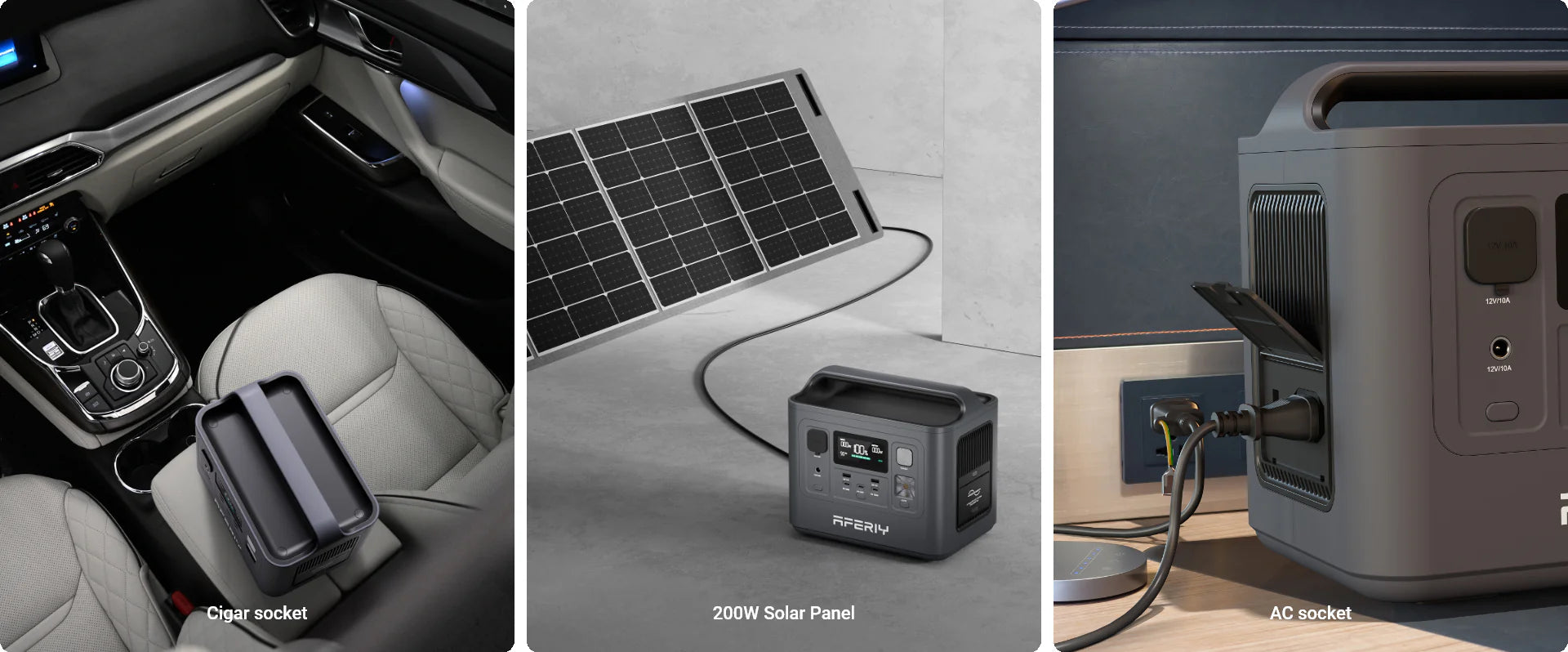 AFERIY Tragbares Powerstation 800W unterstützt 4 Lademethoden. Über eine Wechselstromsteckdose und ein 200-W-Solarpanel ist das Gerät in nur 1 Stunde vollständig aufgeladen. Mit einer maximalen Eingangsleistung von 200 W kann dieses Kraftwerk mit Solarmodulen in 3,5 Stunden vollständig aufgeladen werden. Es kann auch an einer Steckdose in 1,5 Stunden oder an einem 12-V-Autoanschluss in 4 bis 6 Stunden vollständig aufgeladen werden. Halten Sie Ihre elektronischen Geräte beim Camping und bei Stromausfällen aufgeladen.