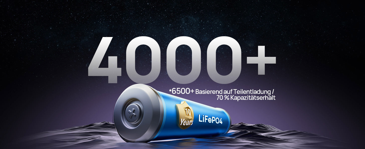 Die P310 Powerstation ist mit hochwertigen LFP-Zellen ausgestattet und bietet eine herausragende Batteriespeicher-Kapazität. Sie ermöglicht über 6.500 Ladezyklen, wobei nach 4.000 Zyklen noch 80 % Kapazität verbleiben – ideal für über 11 Jahre tägliche Nutzung als Solarstromspeicher oder Stromspeicher.